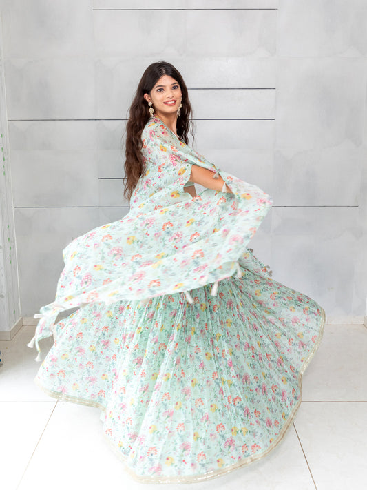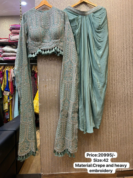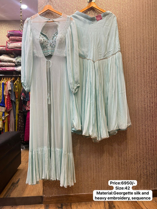 Designer Indowestern Collection By Kalpanas Creations Floral Sea Green Cape