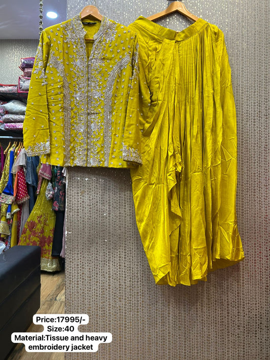 Kalpana’s Creations introduces a stunning designer lush yellow blazer-style jacket, a statement piece that exudes...