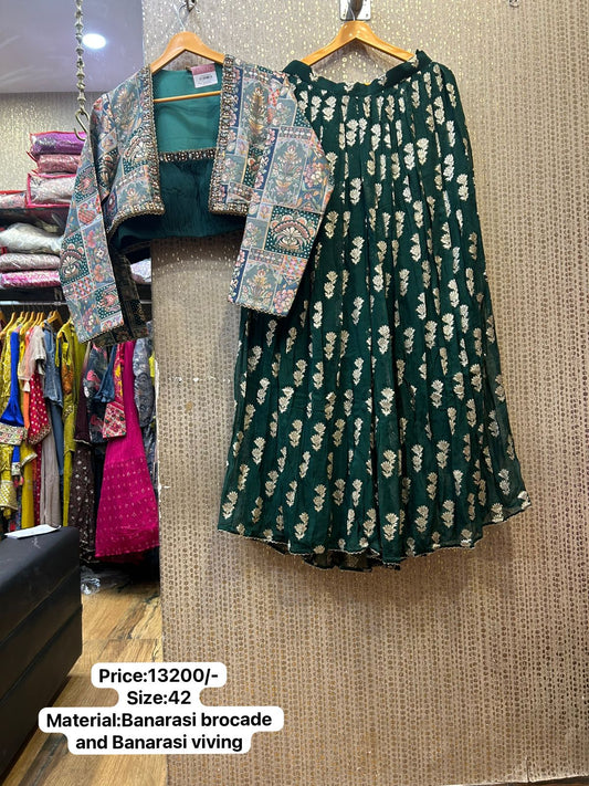 Kalpana’s Creations presents a dESIGNER 22-Meter Flair Vintage Jacket Ensemble, a masterpiece of heritage craftsmanship...