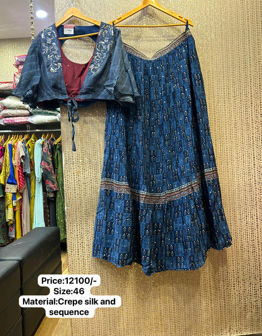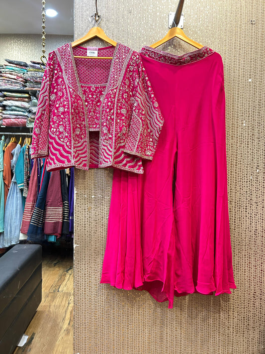 Kalpana’s Creations presents a stunning designer Indo-Western ensemble crafted from pure georgette, exuding modern chic...