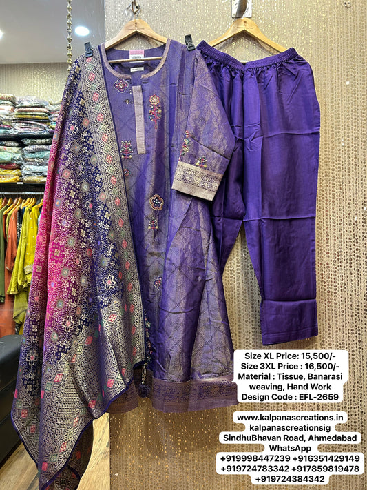 Kalpana’s Creations presents a dESIGNER Tissue Silk Heavy Handwork dRESS, paired with a fancy Banarasi...