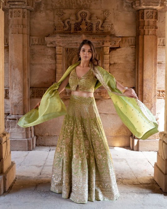 Kalpana’s Creations presents an elegant DESIGNER ensemble featuring a cotton Rama green heavy dress, fancy...