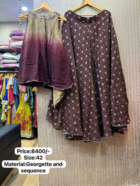 Kalpana’s Creations proudly presents an exquisite designer ensemble featuring a heavy handwork maroon balloon top...