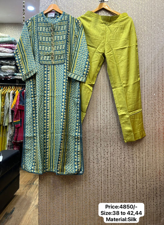 Kalpana’s Creations presents a stunning DESIGNER khat work dress, paired with sleek silk pants and...