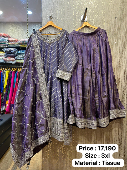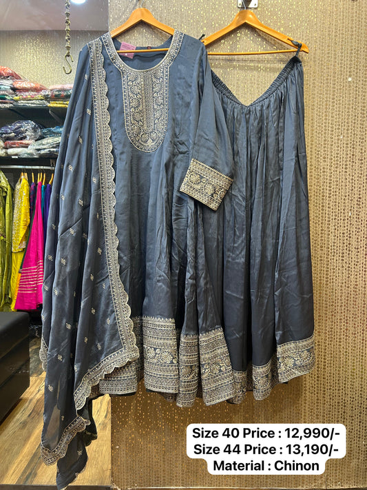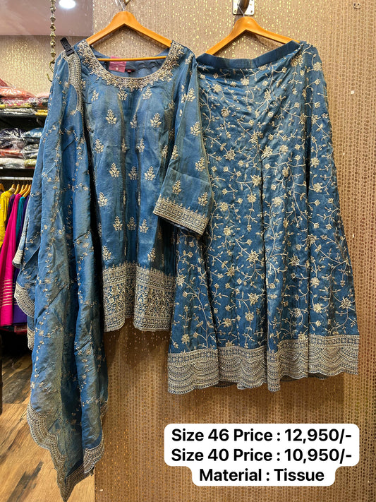 Kalpana’s Creations presents an exquisite DESIGNER ensemble featuring a beautiful heavy top, plazo, and dupatta,...