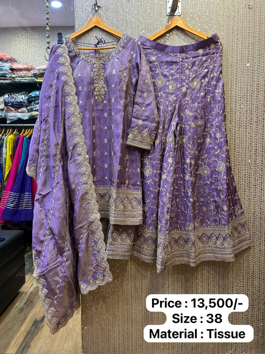 Kalpana’s Creations showcases an exquisite DESIGNER pure tissue dress with embroidery tiki work, matching plazo...