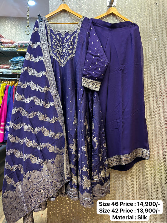 Kalpana’s Creations unveils a stunning DESIGNER ensemble featuring a Banarasi silk heavy gown paired with...