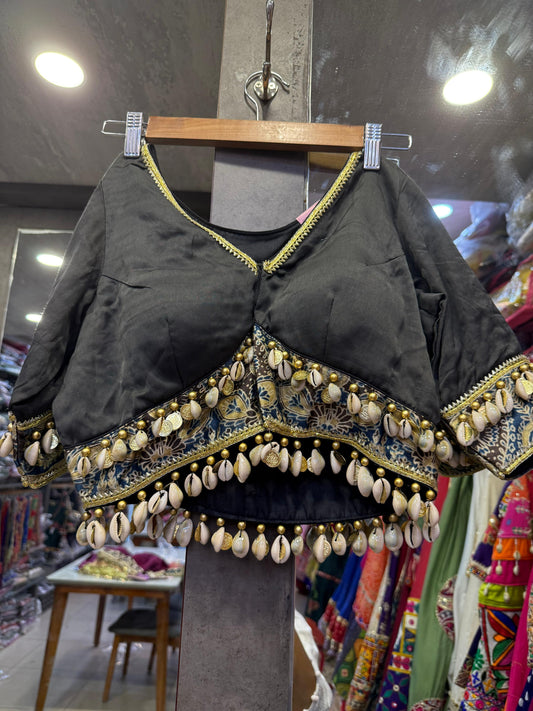 🖤🌿 Ajrakh Kodi Work & Coin Work Choli – Elegant Black Edition by Kalpana’s Creation...