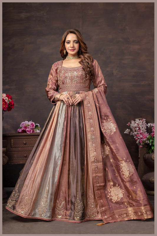 Designer Pure Tissue–Based Multi-Colour Panel Gown SetDesigner Gown Segment by Kalpanas Creations, Sindhu Bhavan Step...