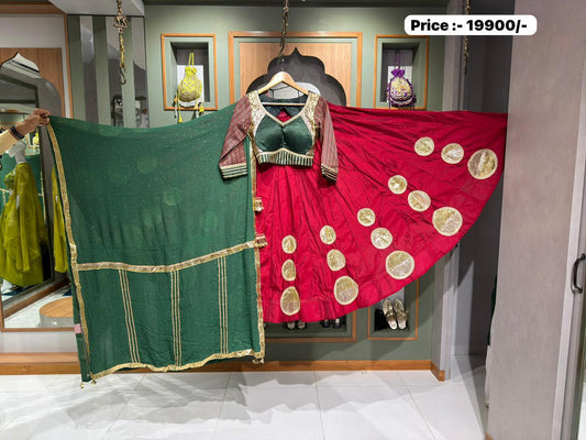 Designer Gajji Silk Chaniya & Blouse with Banarasi & Ajrakh DupattaBy Kalpanas Creations, Sindhu Bhavan...