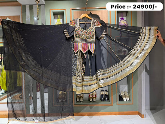 Designer Gajji Silk Chaniya & Blouse with Original Kutchi Work and Vintage Georgette DupattaBy Kalpanas...