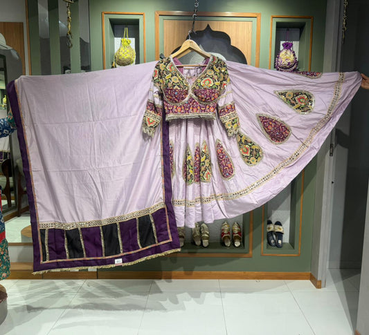 Designer Gajji Silk Chaniya, Cotton Kutchi Work Blouse & Vintage Dupatta SetBy Kalpanas Creations, Sindhu...