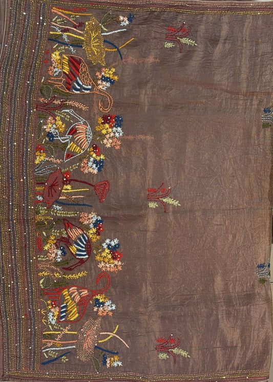 Designer Pure Tussar Silk Saree with Kantha–Rabari FusionBy Kalpanas Creations, Sindhu Bhavan Celebrate the beauty...