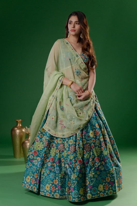 Kalpana’s Creations presents a dESIGNER Lilian Satin Soft Organza Handwork Chaniya paired with a fancy...
