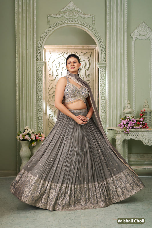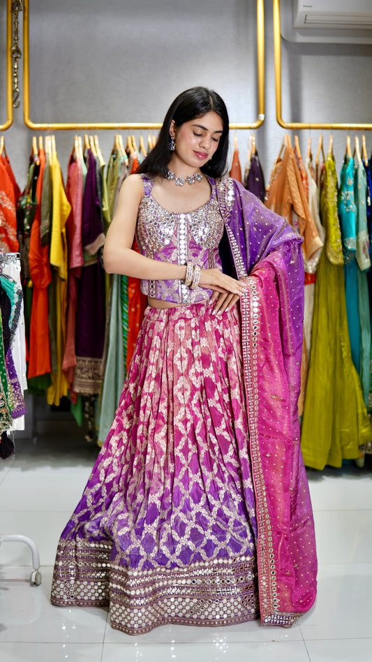 Kalpana’s Creations presents a dESIGNER Raw Silk Real Mirror Work Chaniya Set, a breathtaking ensemble...