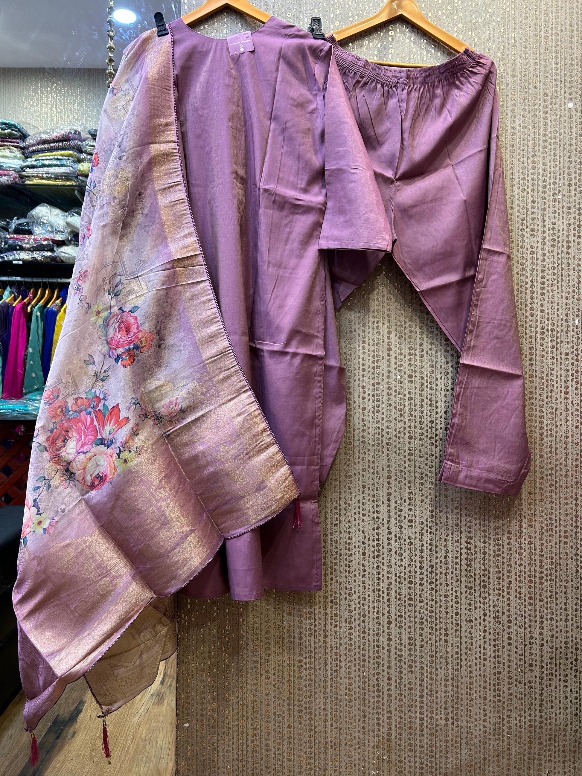 Kalpana’s Creations introduces a stunning DESIGNER silk dress and pant ensemble, paired with a dupatta, effortlessly blending modern chic with timeless elegance.