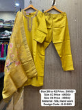 Paired with the handwork dress is a sleek pant that offers both comfort and style. The fitted design of the pant balances the richness of the silk dress, creating a modern, chic look that is perfect for a variety of occasions. The lightweight fabric ensures ease of movement, while the clean, tailored lines add a touch of sophistication to the outfit.