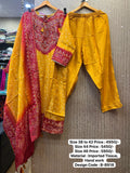 This Kalpana’s Creations ensemble, featuring the imported tissue handwork dress, stylish pants, and coordinating dupatta, offers a modern chic look that’s perfect for formal events, festive gatherings, or evening affairs. The blend of traditional handwork with contemporary design elements makes this outfit a standout choice for any woman seeking elegance with a fashionable edge.