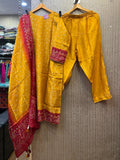 Paired with the handwork dress are sleek, stylish pants that complement the flow of the tissue fabric. These pants feature a flattering cut that balances the dress’s elegant drape, providing a modern yet comfortable alternative to a traditional skirt or Chaniya. The clean lines and tailored fit ensure a sleek, contemporary look, while still being versatile enough for various occasions.