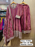 This Kalpana’s Creations outfit, featuring a pure tissue havay embroidery dress, palazzo pants, and a fancy dupatta, delivers a modern chic look that is both elegant and contemporary. Perfect for weddings, festive celebrations, or formal events, this ensemble is designed to make a lasting impression with its luxurious fabric, intricate embroidery, and stylish design.