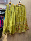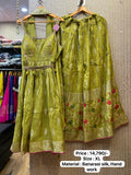 The centerpiece of this outfit is the exquisite Banarasi silk dress, enriched with intricate handwork. The luxurious fabric showcases the timeless beauty of Banarasi weaving, while the delicate embroidery adds a touch of artisanal finesse. The flowing silhouette of the dress ensures comfort and grace, making it ideal for both festive and formal occasions.