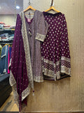 Paired with the dress is a chic palazzo, crafted for both style and comfort. The wide-leg design of the palazzo complements the flowing nature of the georgette material, creating a harmonious balance between traditional elegance and contemporary fashion. The palazzo's versatility ensures a flattering fit and ease of movement, making it suitable for day-to-night transitions.