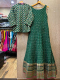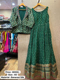 Kalpana’s Creations brings you a unique blend of tradition and modernity with this ensemble. The combination of the Banarasi silk gown and fancy Banarasi jacket creates a refined, chic look that’s perfect for high-end events, weddings, or gala evenings. The ensemble’s mix of flowing elegance and tailored structure gives it a modern chic appeal, making it a sophisticated yet fashion-forward choice for the contemporary woman.
