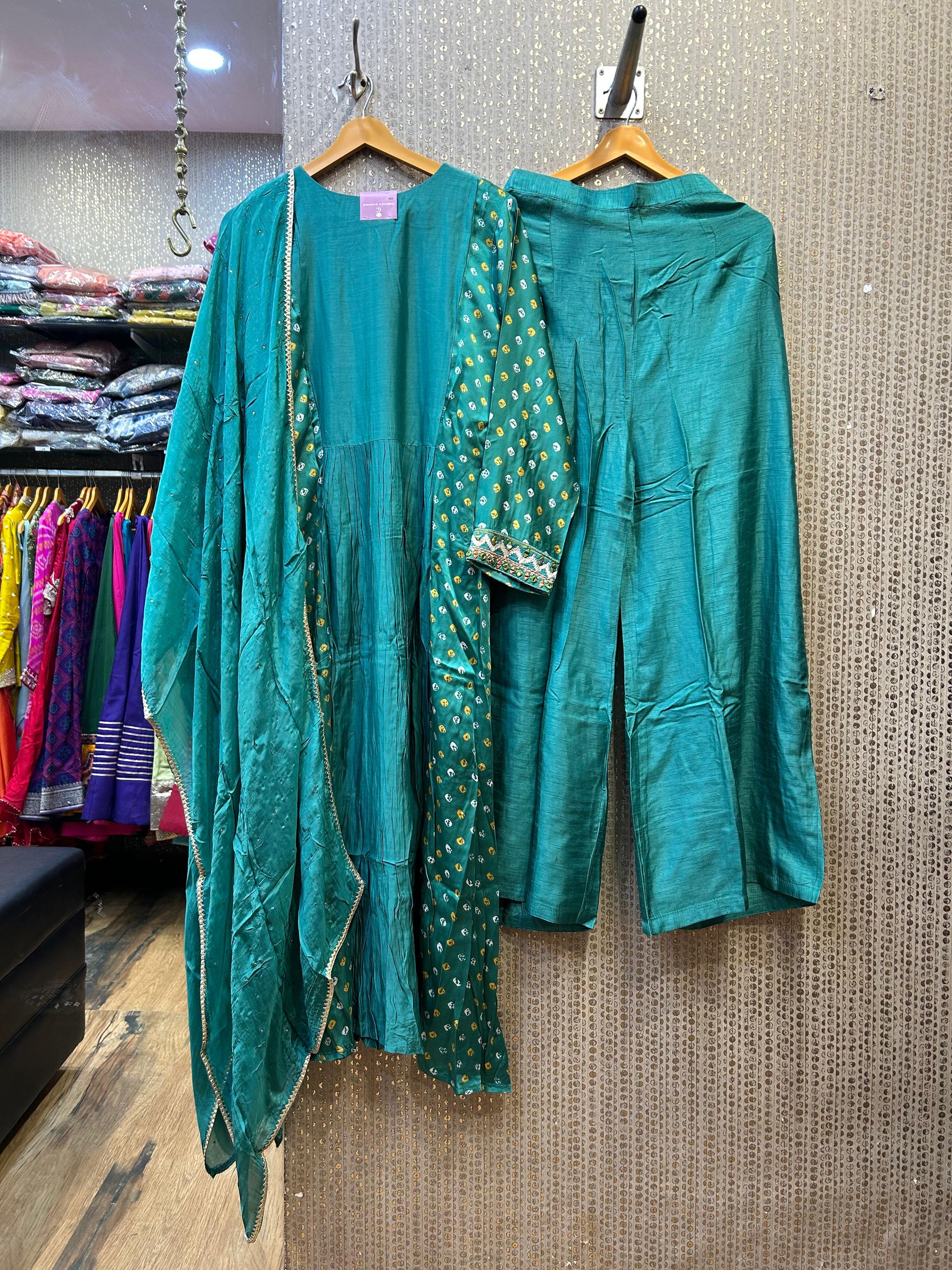 Kalpana’s Creations presents a stunning DESIGNER ensemble featuring a muslin dress, heavy pants, and a fancy designer dupatta, perfectly crafted to embody a modern chic look with a touch of elegance.
