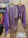 Kalpana’s Creations introduces a stunning DESIGNER pure tissue havay dress and pant ensemble, complemented by a fancy dupatta, offering a perfect blend of modern chic elegance with traditional craftsmanship.