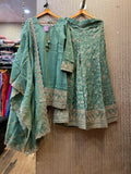 The outfit is completed with a fancy designer dupatta that enhances the overall ensemble. The dupatta is beautifully crafted with elegant detailing, offering a balance of tradition and modernity. Its soft, flowing fabric drapes gracefully, creating an air of sophistication. The dupatta adds the perfect finishing touch, elevating the entire look with its subtle charm and delicate design.
