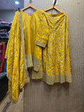 This Kalpana’s Creations outfit, with its tissue-based dress, handwork and tiki embroidery, fancy palazzos, and a designer dupatta, epitomizes a modern chic look. Perfect for festive celebrations, weddings, or sophisticated gatherings, this ensemble blends timeless elegance with contemporary charm, making it a standout addition to any wardrobe.