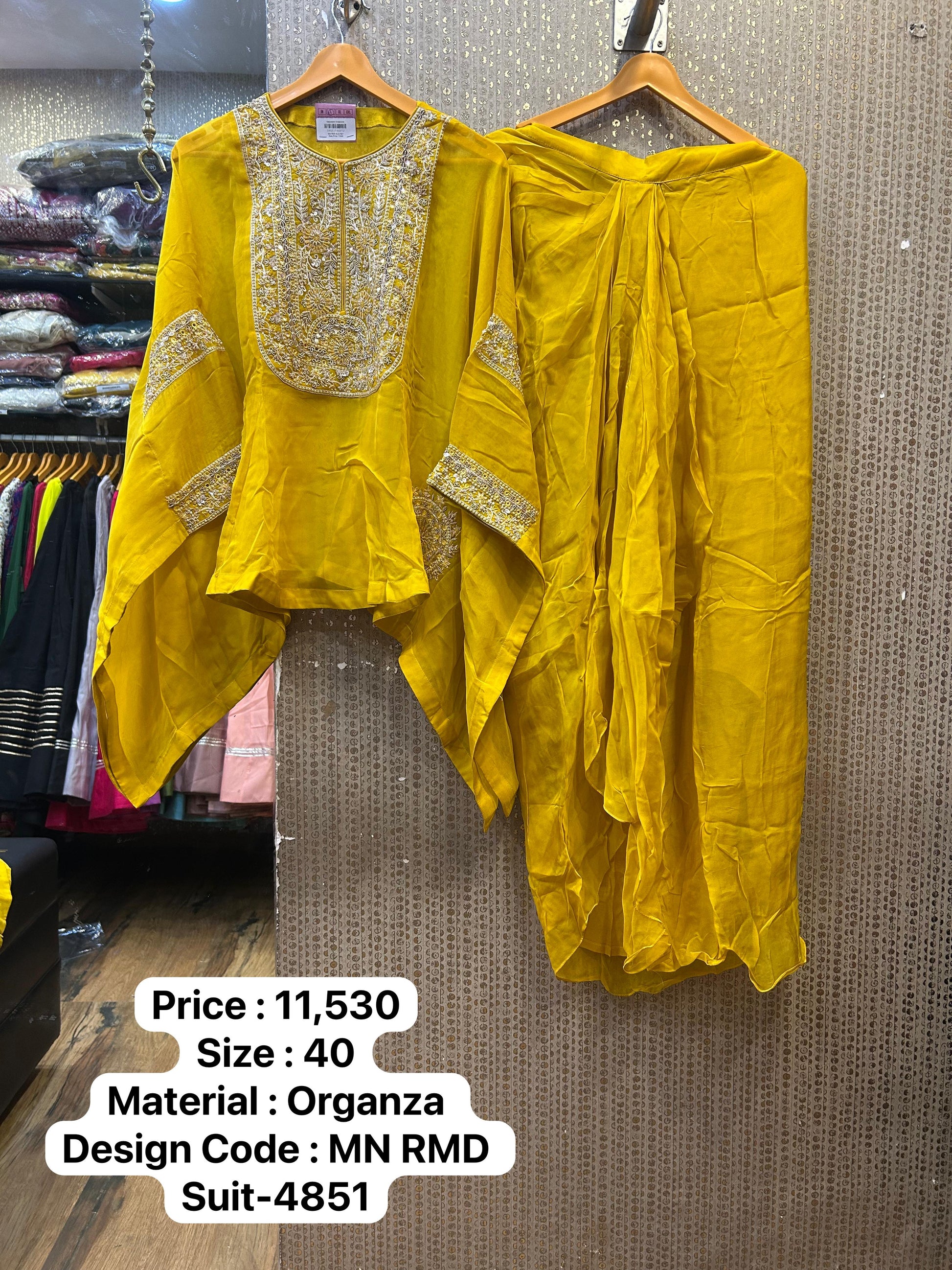 Kalpana’s Creations introduces an exquisite DESIGNER ensemble featuring a cowl-style dhoti, a fancy spaghetti blouse, and a kaftan, seamlessly blending traditional charm with modern chic elegance.