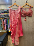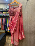 This dESIGNER ensemble redefines elegance with its fusion of traditional craftsmanship and contemporary draping styles. Perfect for weddings, festive gatherings, and exclusive events, this outfit is designed for the modern woman who loves to shine with effortless grace.