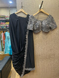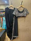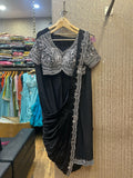 Crafted from rich silk, this drape saree flows effortlessly, giving a sleek and regal silhouette. The soft texture and natural sheen of the fabric enhance the graceful fall, making it perfect for modern fashionistas who love sophisticated draping with ease.