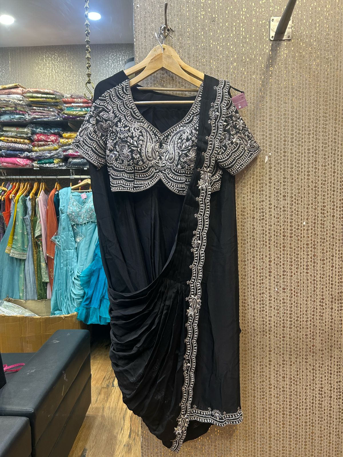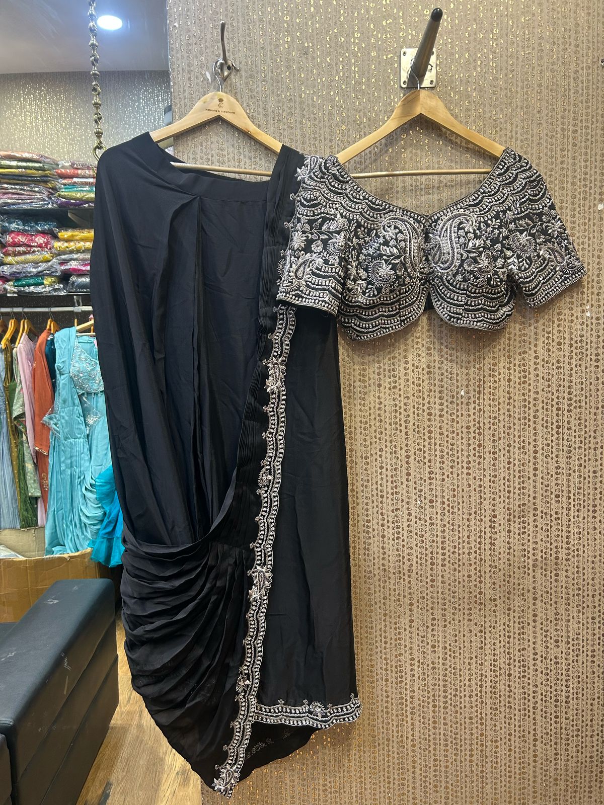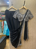 Kalpana’s Creations presents a dESIGNER Silk Drape Saree, paired with an exquisitely handworked blouse, creating a modern chic look that blends luxury with effortless elegance.