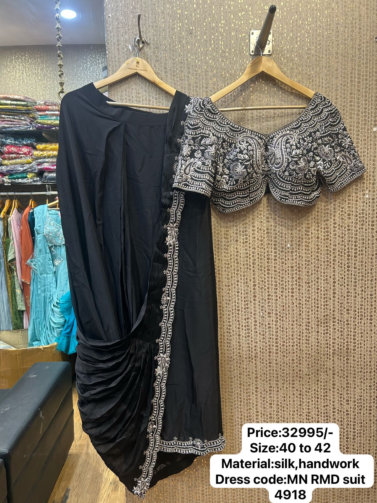 This dESIGNER ensemble is a perfect balance of heritage and trend, ideal for weddings, festive celebrations, and high-fashion events. The effortless drape, intricate handwork, and luxurious silk come together to create a stunning statement piece, making every wear a moment of elegance and sophistication.