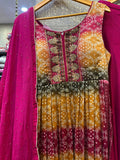 This designer outfit by Kalpana’s Creations epitomizes modern chic, seamlessly blending vibrant colors, intricate designs, and luxurious materials. The combination of the pure modal bandhani long top, heavy handwork buttas, tailored pants, and elegant dupatta makes this ensemble perfect for weddings, festive occasions, or upscale gatherings. With its unique fusion of traditional and contemporary elements, this outfit is sure to make a lasting impression and celebrate the essence of modern Indian fashion.