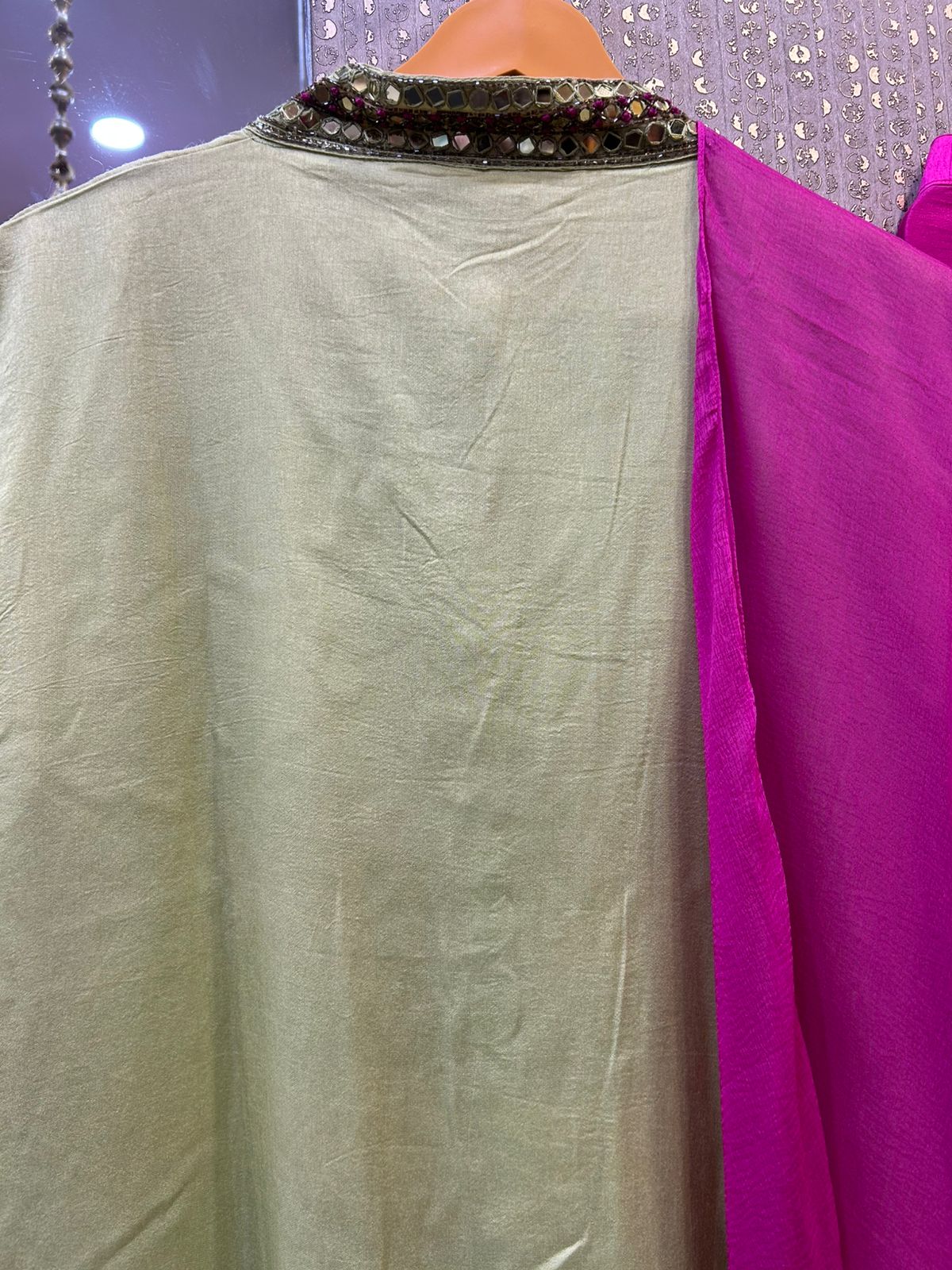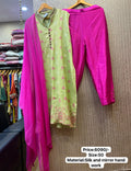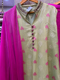 This mint green silk-based ensemble by Kalpana’s Creations beautifully blends traditional handwork with a modern, minimalist design. Whether you’re attending a festive celebration, a formal gathering, or a stylish day event, this outfit is sure to make a lasting impression. Its effortless elegance, combined with the luxurious silk fabric, makes it an ideal choice for women who seek a chic yet timeless look.