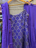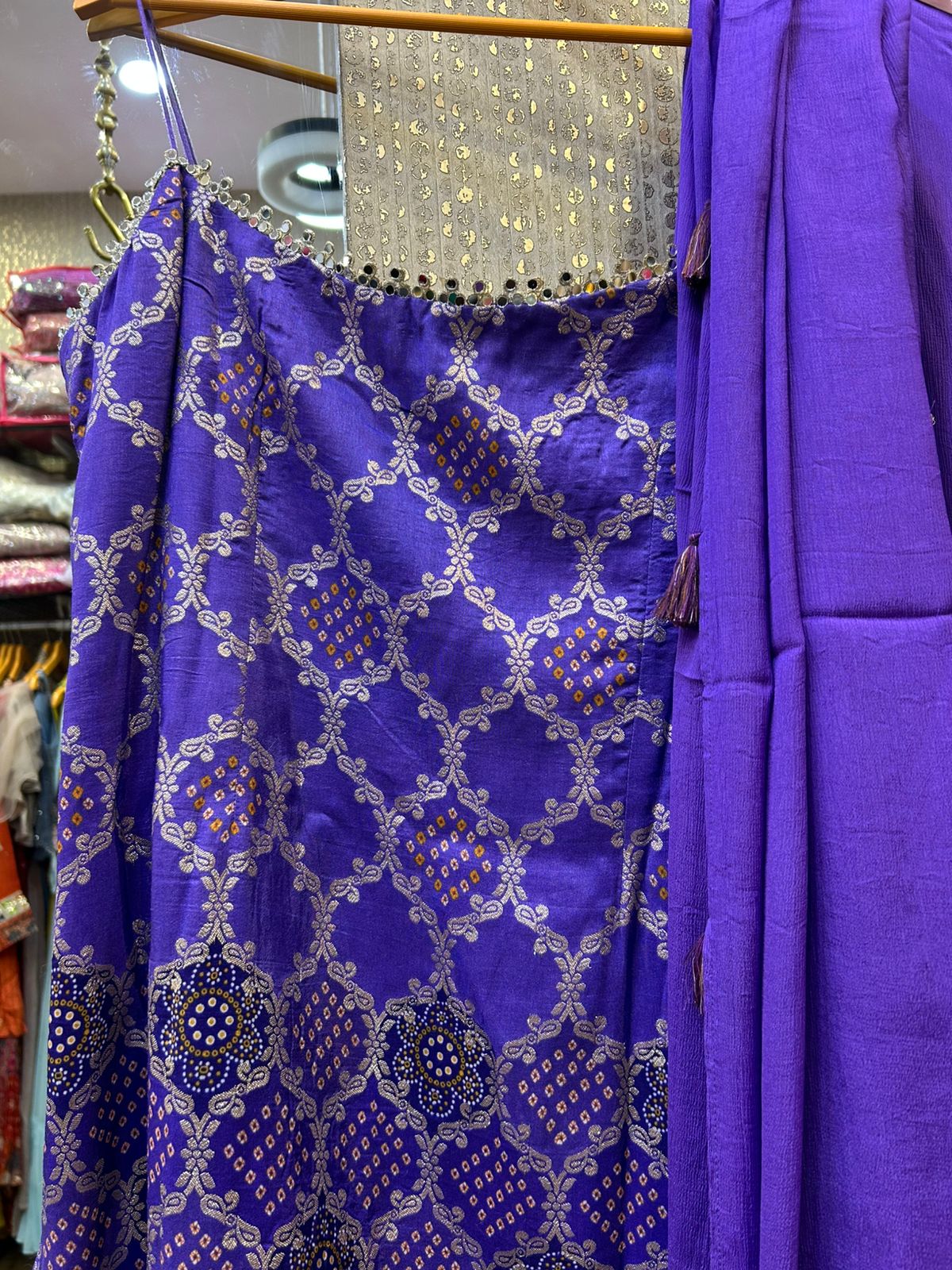 Kalpana’s Creations introduces a breathtaking designer ensemble featuring a lush purple long cape-style Indo-Western outfit, crafted to celebrate elegance and individuality with a focus on plus-size fashion. This stunning set includes a richly embellished spaghetti top with real stonework, a flowing silk dupatta, and a statement-making sharara bottom, all coming together to offer a unique and chic look.