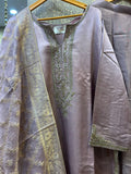 The highlight of this outfit is the heavy Banarasee weaving dupatta, which adds a regal touch to the entire look. The rich texture and intricate patterns of the dupatta create a striking contrast with the subtle onion pink DRESS, enhancing the outfit’s overall elegance. The dupatta’s bold design and traditional weaving techniques make it a statement piece, adding depth and luxury to the ensemble.