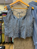 Accompanying the saree is a chic spaghetti blouse that exudes modern elegance. The blouse is designed with exquisite craftsmanship, featuring fancy detailing that complements the saree's aesthetic. The spaghetti straps add a youthful touch, while the fitted design ensures a flattering silhouette. This blouse is not only stylish but also versatile, allowing for easy movement and comfort throughout the day or night.