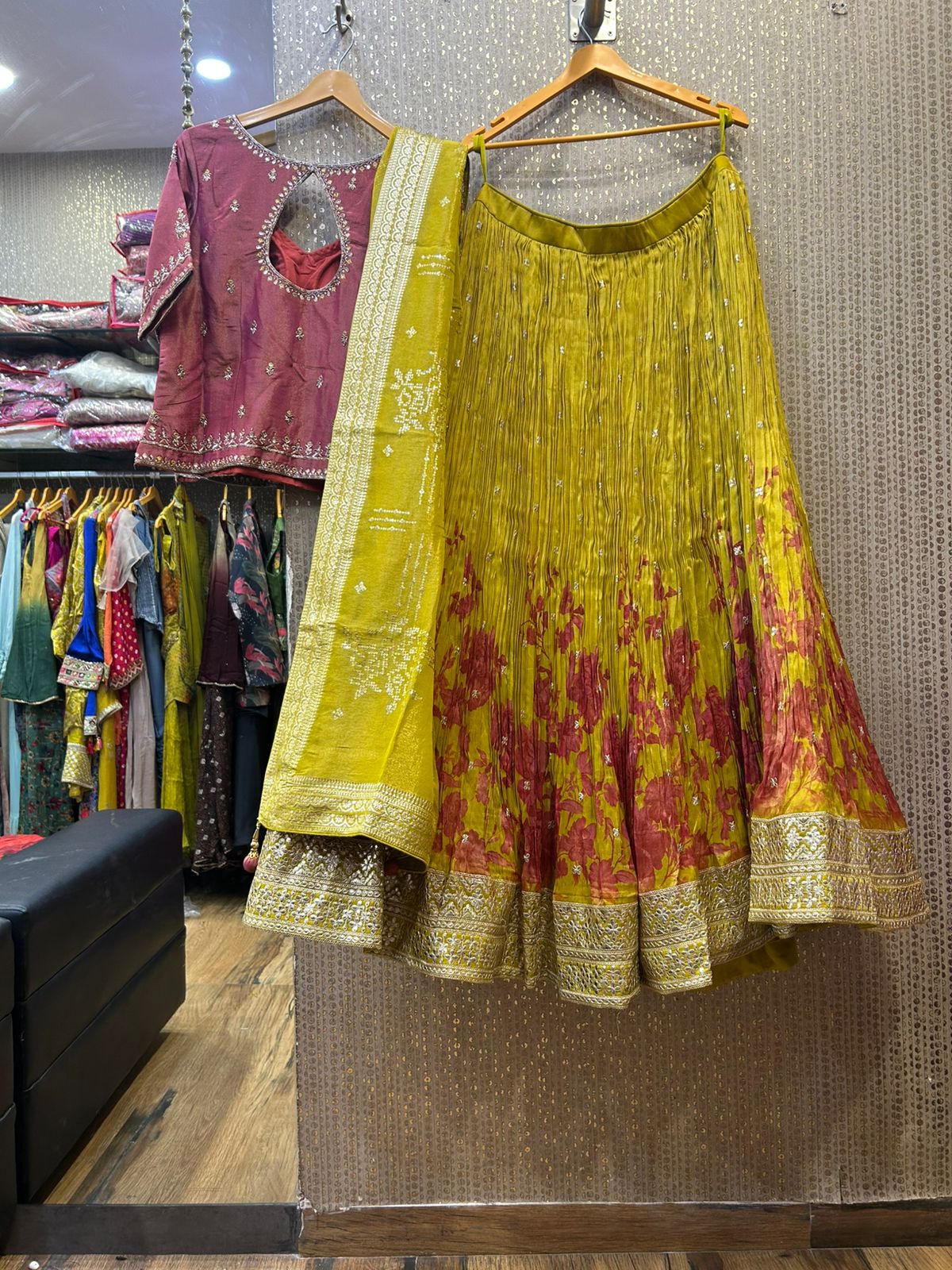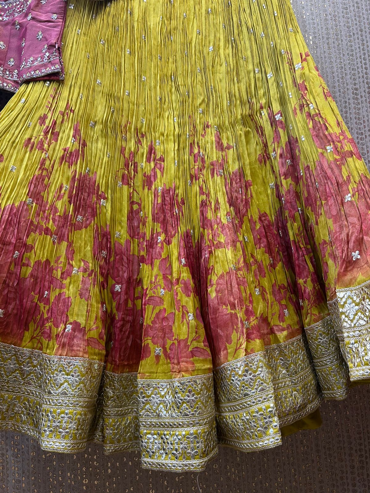 Crush Silk Abstract Print Chaniya with Heavy Tikki Work
