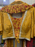 Completing the ensemble is the luxurious soft silk dupatta, which adds a touch of refinement to the outfit. Its smooth, lightweight texture and subtle sheen create a graceful drape, enhancing the overall aesthetic. The dupatta serves as a versatile accessory, bringing an air of sophistication to the bold prints and ruffle details, while maintaining the balance between modern and traditional elements.