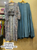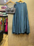Adding a bold, contemporary edge to the outfit is the beautifully crafted spaghetti-strap blouse, embellished with intricate heavy handwork. The delicate yet rich detailing of the hand embroidery enhances the blouse's appeal, creating a striking contrast with its minimalistic design. The fitted, sleeveless style of the spaghetti blouse offers a modern, figure-flattering shape that adds sophistication to the ensemble, perfect for women looking to make a statement with their fashion choices.