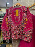 Kalpana’s Creations presents a stunning DESIGNER ensemble featuring a Zardosi and sequin Chaniya, a chic spaghetti blouse, and a striking Patola Koti. This bold combination perfectly captures a unique chic look, blending intricate traditional artistry with a modern twist, ideal for making a statement at festive occasions and stylish events.