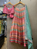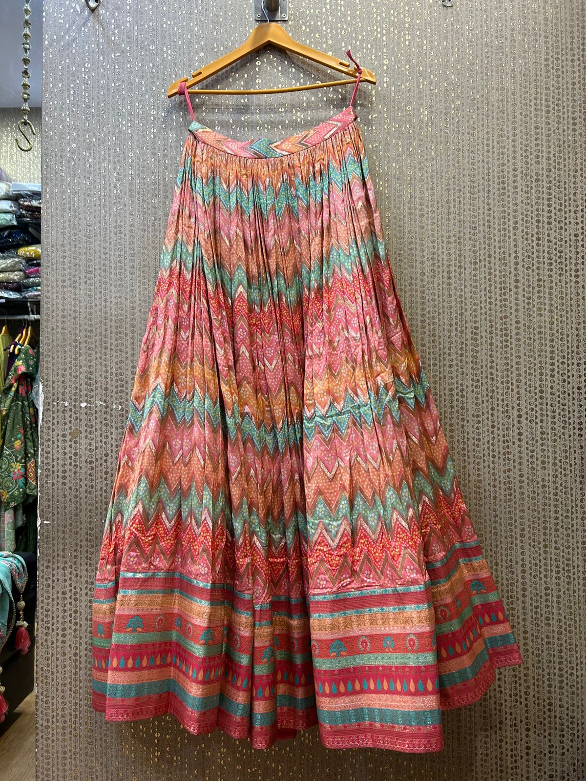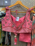 Complementing the Chaniya is a chic spaghetti heavy blouse that adds a touch of modern sophistication. Tailored to perfection, the blouse features adjustable spaghetti straps and a fitted design that accentuates the figure. The heavy embellishments and intricate detailing enhance the blouse's allure, making it a standout piece in its own right. This trendy style not only adds a contemporary edge to the outfit but also ensures comfort and ease of movement, perfect for any festive occasion.