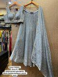 Kalpana’s Creations presents a striking DESIGNER ensemble featuring a georgette Zardosi Katdana Chaniya, a fancy spaghetti mirror work blouse, and a stylish dupatta, offering a unique chic look that effortlessly blends tradition with modern elegance.