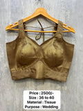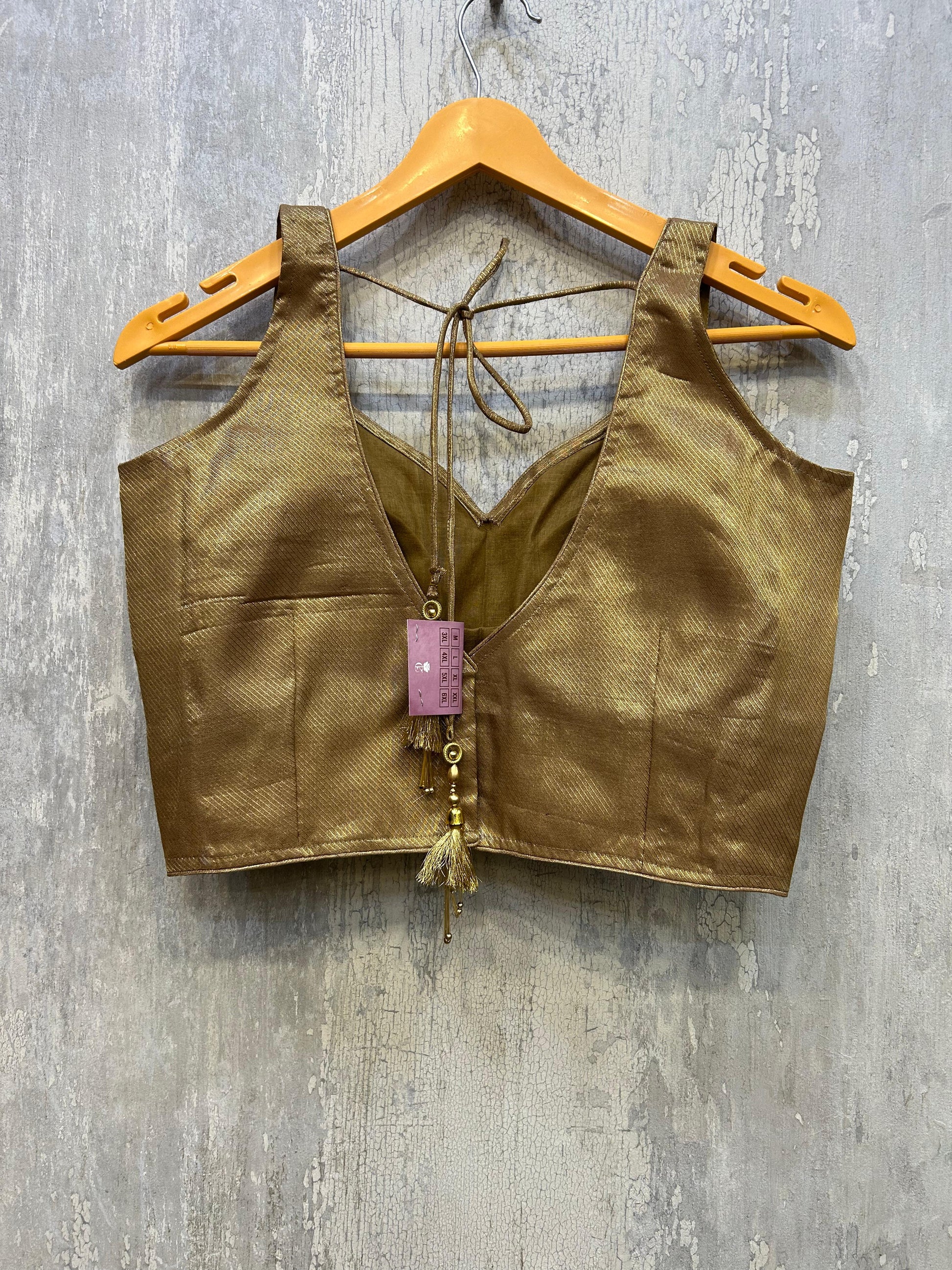 The DESIGNER Fancy Spaghetti Tissue Blouse by Kalpana’s Creations exudes a modern chic vibe with its minimalist design and refined craftsmanship. Its versatility allows it to be paired effortlessly with both traditional and contemporary pieces, creating an ensemble that is both timeless and trendy. Whether paired with a lehenga, saree, or skirt, this blouse adds a touch of modern elegance to any outfit.