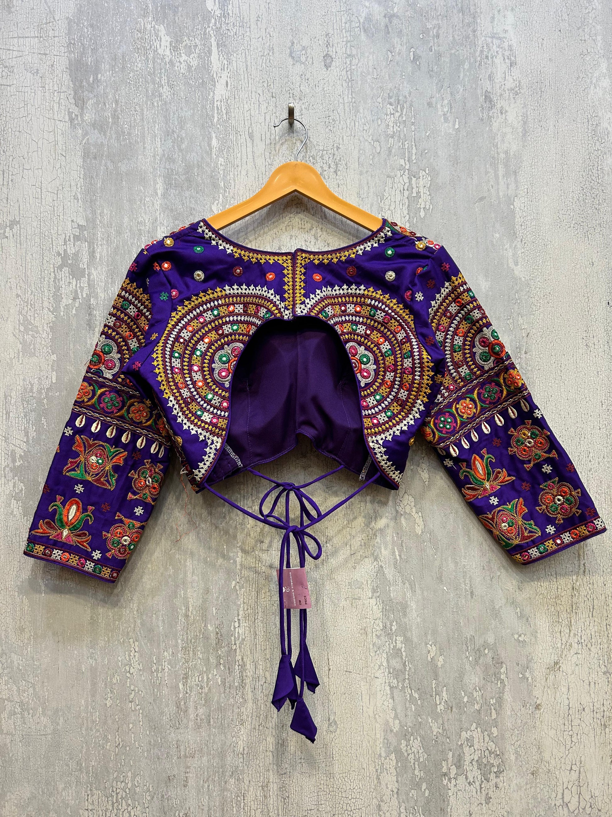 The modern design of the blouse, with its sleek silhouette and refined detailing, complements the traditional embroidery beautifully. Whether paired with a contemporary lehenga, classic saree, or stylish palazzo pants, this blouse exudes sophistication, making it perfect for weddings, festive celebrations, and cocktail events.