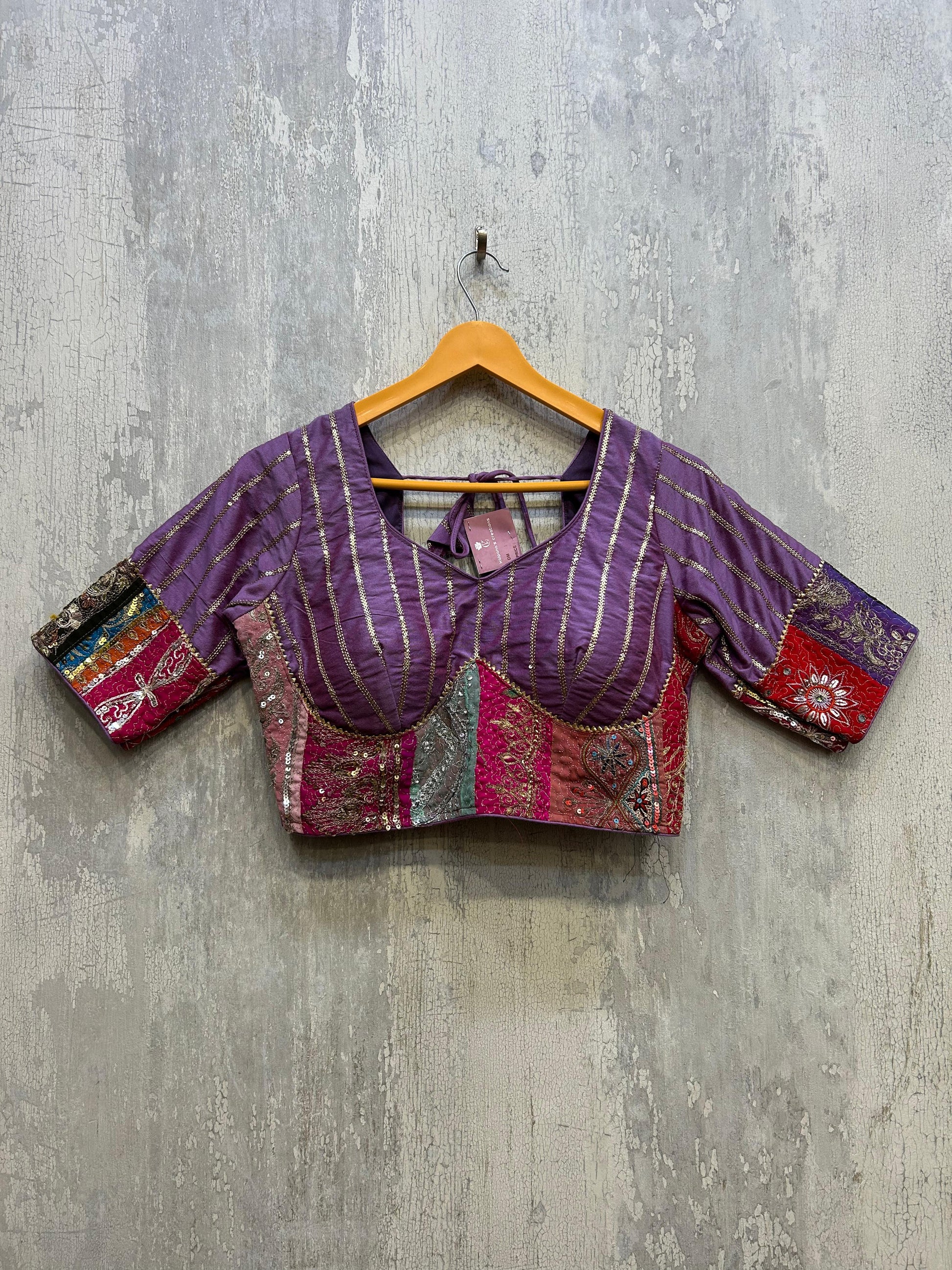 Kalpana’s Creations presents an exquisite DESIGNER silk hand-vintage blouse that perfectly captures the essence of modern chic fashion with a timeless touch of heritage craftsmanship.